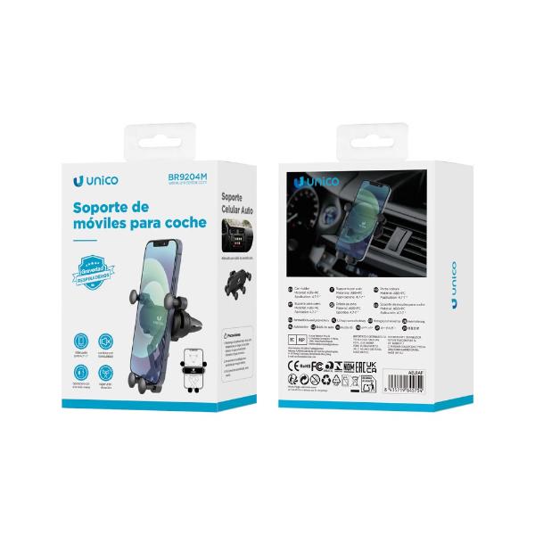 UNICO BR9204 - SOPORTE DE COCHE PARA MOVIL EN SALIDA DE AIRE NEGRO